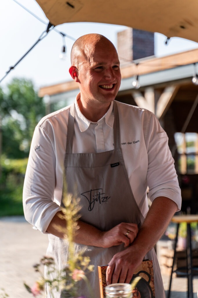 Een bevlogen chef en geboren Fries die via de bakkerij van zijn opa de passie voor bakken en voedsel ontdekte en via Friesland en Drenthe zijn weg vond naar Amsterdam. Restaurant Ron Blaauw, De Vrienden van Jacob, het Waldorf Astoria Amsterdam en restaurant Persijn en Juniper & Kin in het QO Amsterdam staan onder andere op zijn cv. Naast chef-kok en kookboekauteur, valt zijn ondernemerszin op. Zo is hij onder andere private chef, organisator van de 24H chefs kookmarathon en is de CuliQuiz van zijn hand. Misschien nog belangrijker: Tjitze stelt zijn gasten centraal. Maakt graag contact en vertelt over zijn creaties. Geen wonder dat we ook voor de 2024 editie van Dineren in de Wijngaard weer samenwerken.