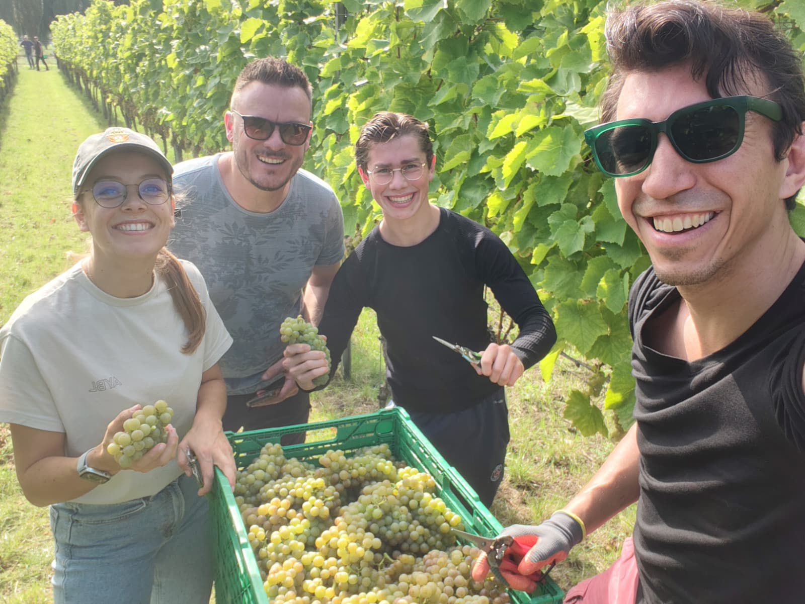 Margot vertelt: “Ik heb een fantastische dag gehad bij het oogsten van Muscaris. Lekker met de handen bezig zijn en druiven per tros controleren op kwaliteit, om zo de allerlekkerste wijn te kunnen ontwikkelen. Jammer dat het nog even duurt voordat het in de fles zit. Ik kijk uit naar 2026.”