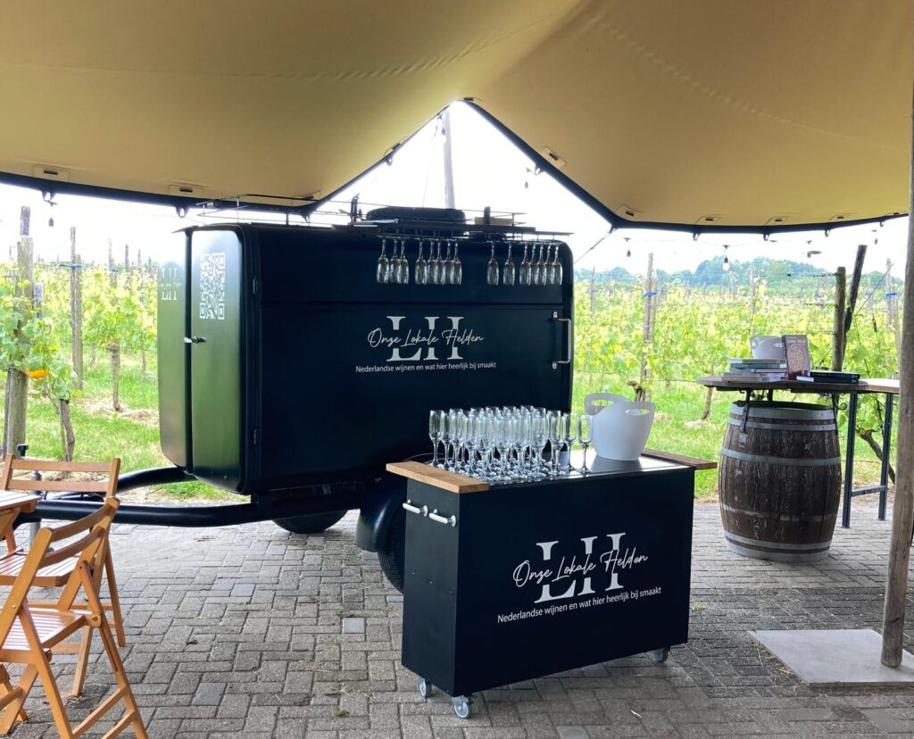 Op zoek naar een eyecatcher voor je feest? Een volledig uitgeruste mobiele bar met wijnklimaatkast, sfeerverlichting, bistrosetjes, glaswerk en Nederlandse wijnen die we samen met jou selecteren. Bubbels, wit, rood, rosé of oranje wijn, we hebben het voor je. De bediening en sommelier maakt het geheel compleet.